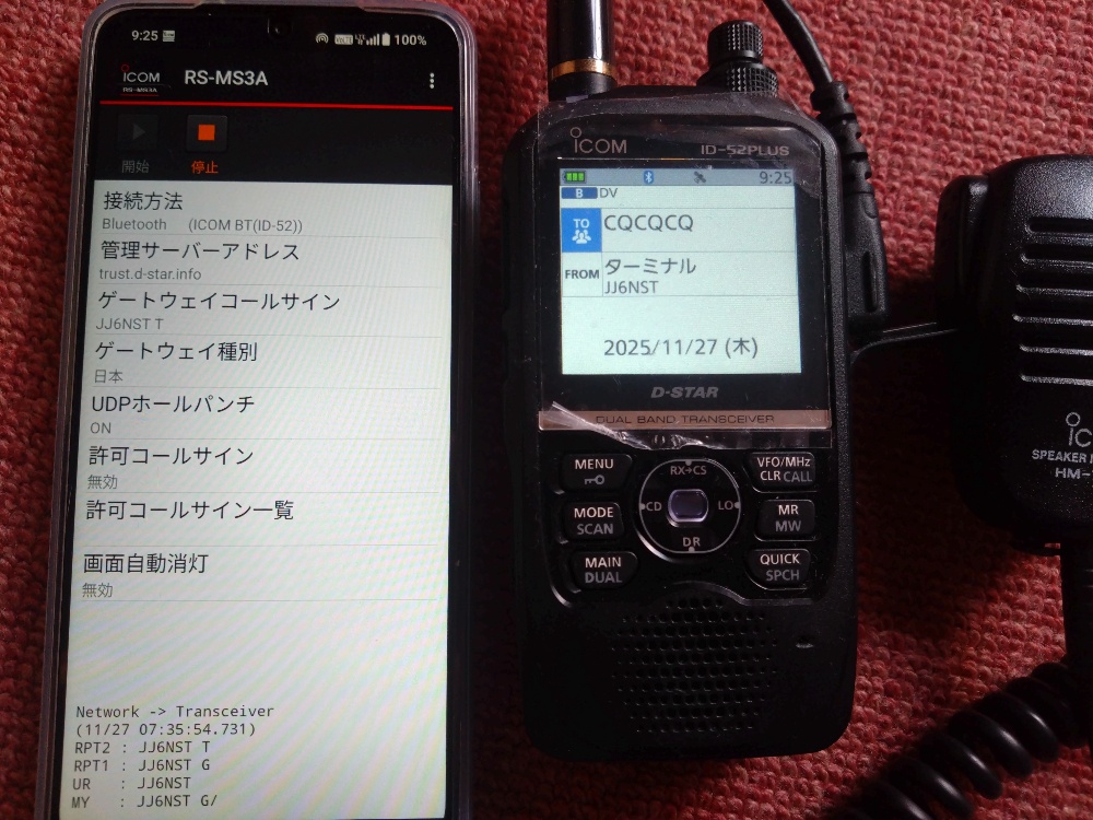 ターミナルモード運用時は無線機とスマホをBluetooth接続しています。